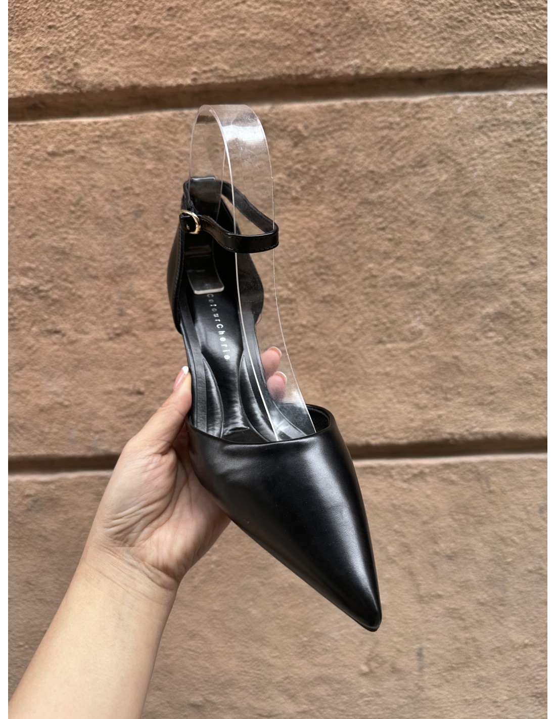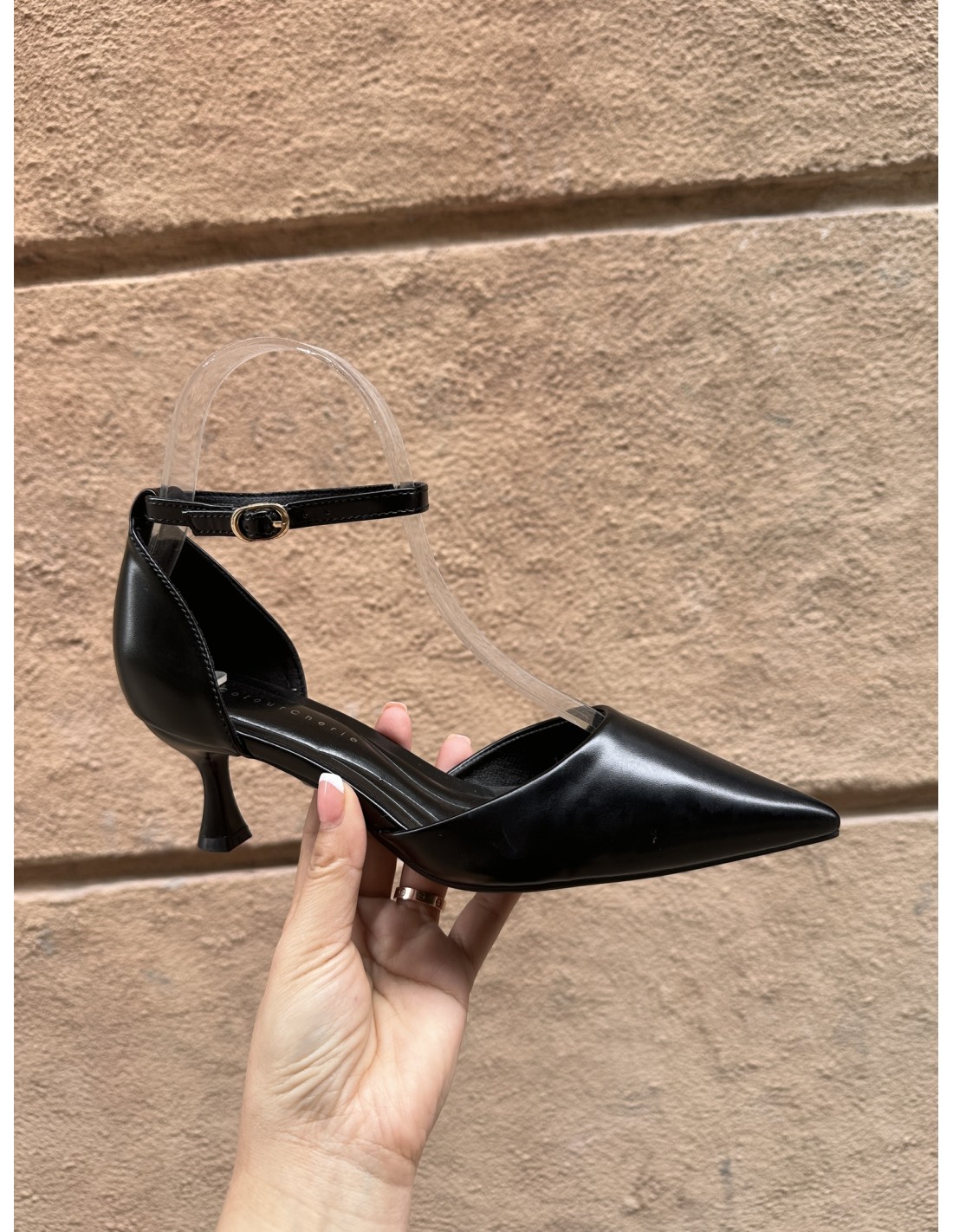 Zapato de tacón elegante en acabado COLRO .dorado .NEGRO .NUNDE