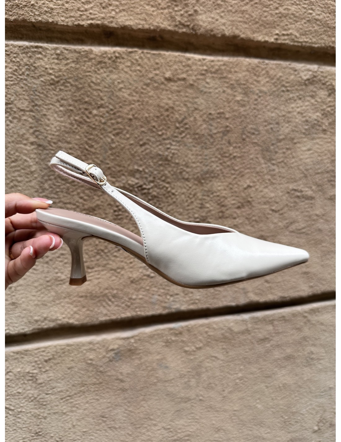 Zapato de tacón slingback en tono neutro